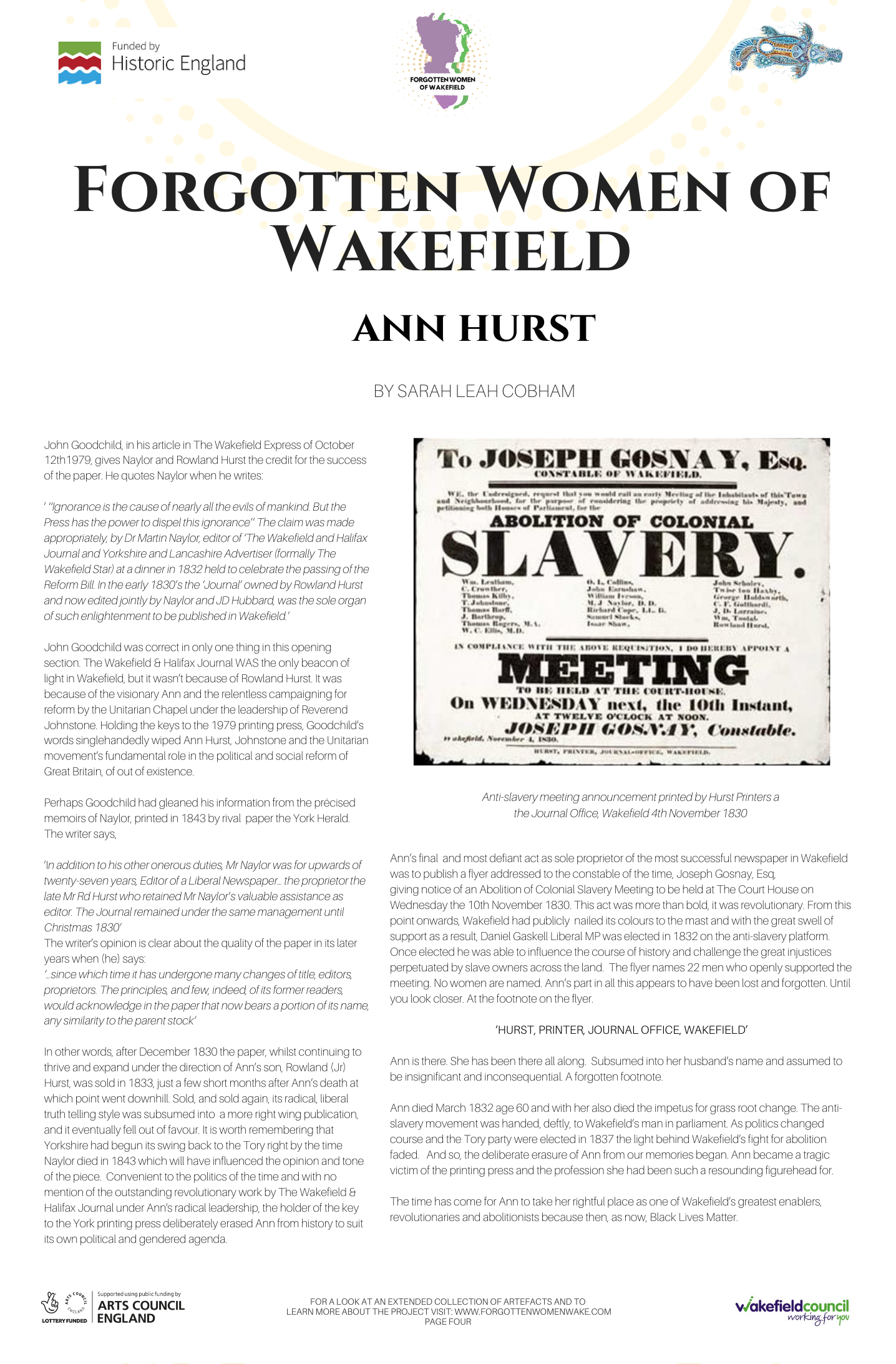 Pingback: Forgotten Women of Wakefield Project – Walton Library
